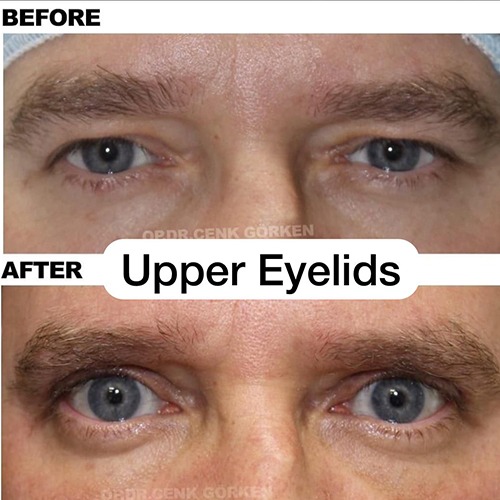 In cases where only the skin needs to be removed, the procedure can be performed with local anesthesia, or in cases where it is combined with eyebrow surgery, general anesthesia may be needed. The procedure is performed under sterile conditions and it takes approximately 45 minutes to intervene on both upper eyelids. When performed under general anesthesia with brow lift, the operation takes approximately 1.5 hours.
